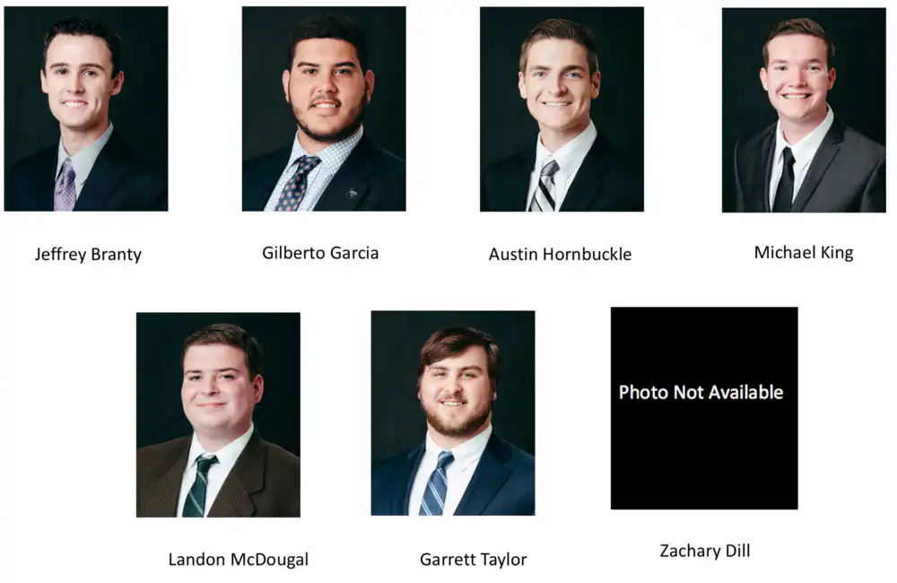 Arkansas Insurance Hall of Fame Scholarship recipients: Jeffrey Branty, Gilberto Garcia, Austin Hornbuckle, Michael King, Landon McDougal, Garrett Taylor, Zachary Dill